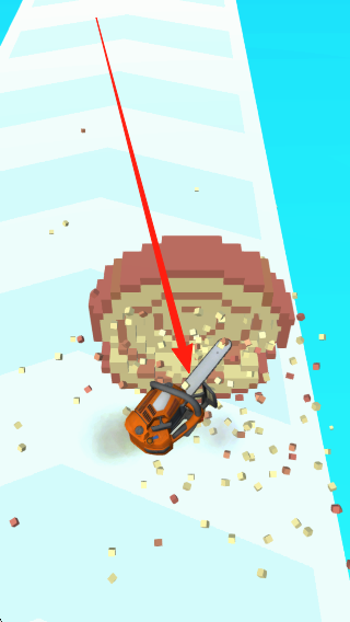 2、角色攜帶電鋸向前沖刺,遇到可鋸切的物品時啟動電鋸將其鋸開,躲避無法鋸切的堅硬障礙,保持前進(jìn)節(jié)奏。