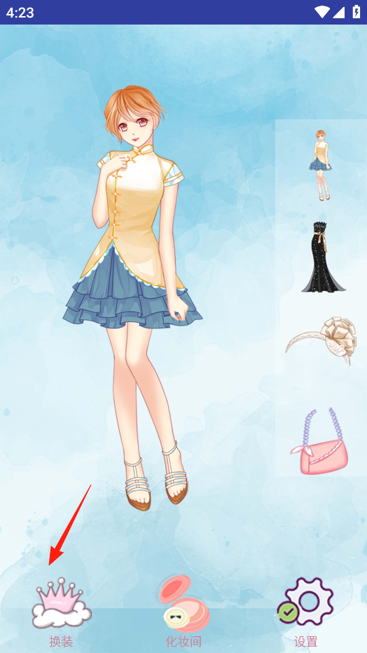 2、你可以點(diǎn)擊換裝按鈕,點(diǎn)擊后右側(cè)會(huì)出現(xiàn)不同的服裝配飾,你可以挑選喜歡的給人物換上,打造出不同的造型。