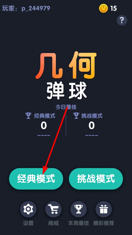 1、進入游戲選擇經(jīng)典或挑戰(zhàn)模式,經(jīng)典模式長按屏幕拖動畫線,自由調整彈球發(fā)射角度與力度,松手瞬間發(fā)射。