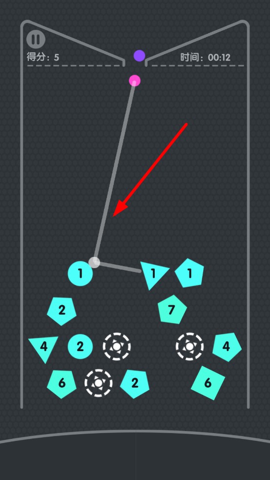 1、角度計算策略:發(fā)射前預判彈球反彈路徑,優(yōu)先攻擊密集高分區(qū),利用場景邊緣反彈制造繞場連擊,避開直接掉落區(qū),規(guī)劃軌跡,延長彈射壽命。