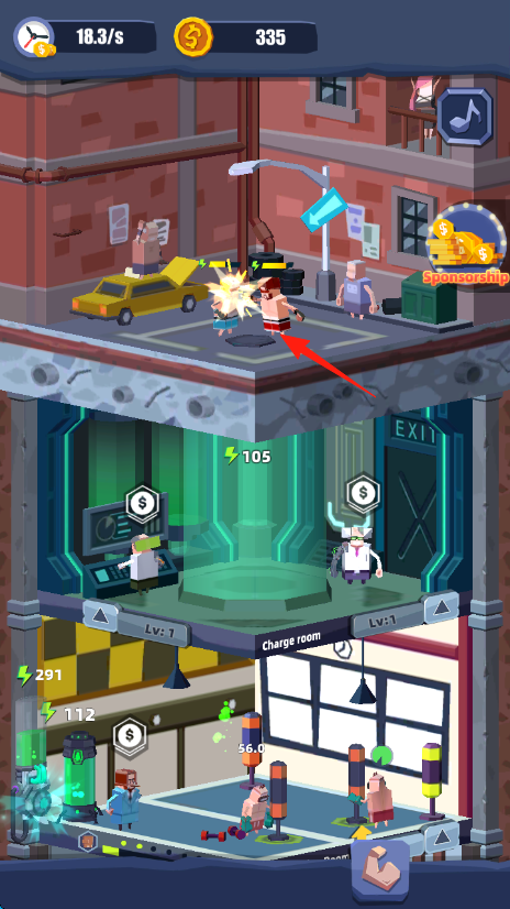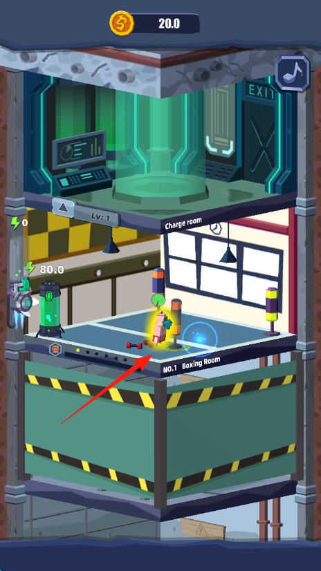 1、進(jìn)入游戲在NO.1BoxingRoom訓(xùn)練角色紅箭頭,消耗金幣提升等級(jí),增強(qiáng)戰(zhàn)力。