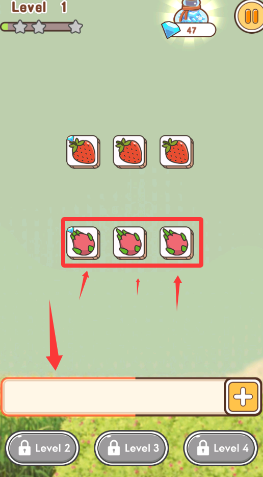 3、放3個(gè)相同水果就能消滅的了,加油吧。