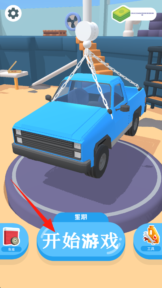 1、在初始界面點擊開始游戲,進(jìn)入汽車修理環(huán)節(jié),點擊屏幕上的按鈕開始當(dāng)前的游戲。