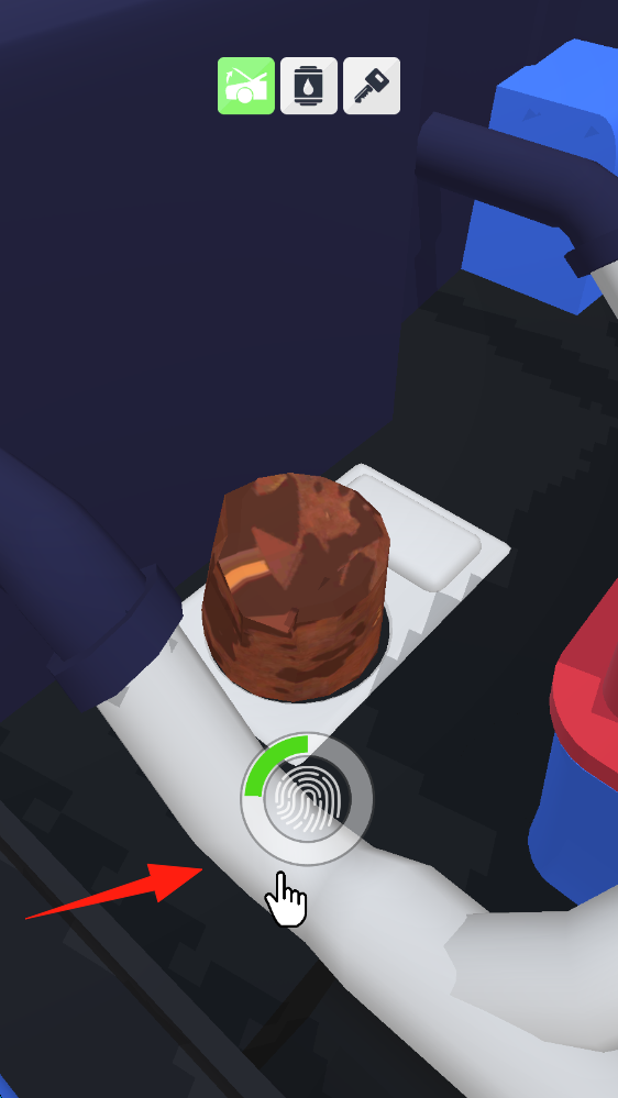 2、遇到生銹部件,長按指紋圖標(biāo)清理,完成基礎(chǔ)修復(fù),點擊旋轉(zhuǎn)拔出舊的木頭篩子。