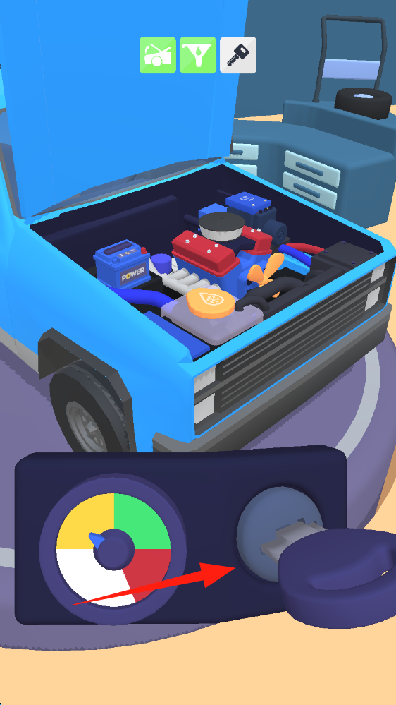 3、多樣車型與工具:各種品牌、型號的汽車正等著您修理,同時提供扳手、千斤頂?shù)雀鞣N汽車維修工具,幫助玩家更快地完成挑戰(zhàn)。
