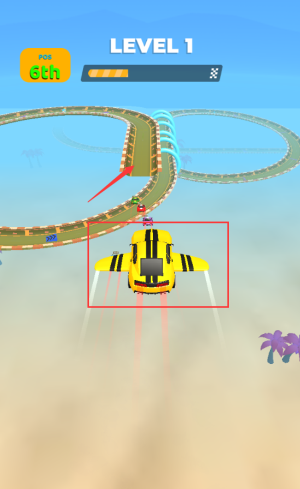 1、點(diǎn)擊紅框左箭頭按鈕,控制賽車向左轉(zhuǎn)向。