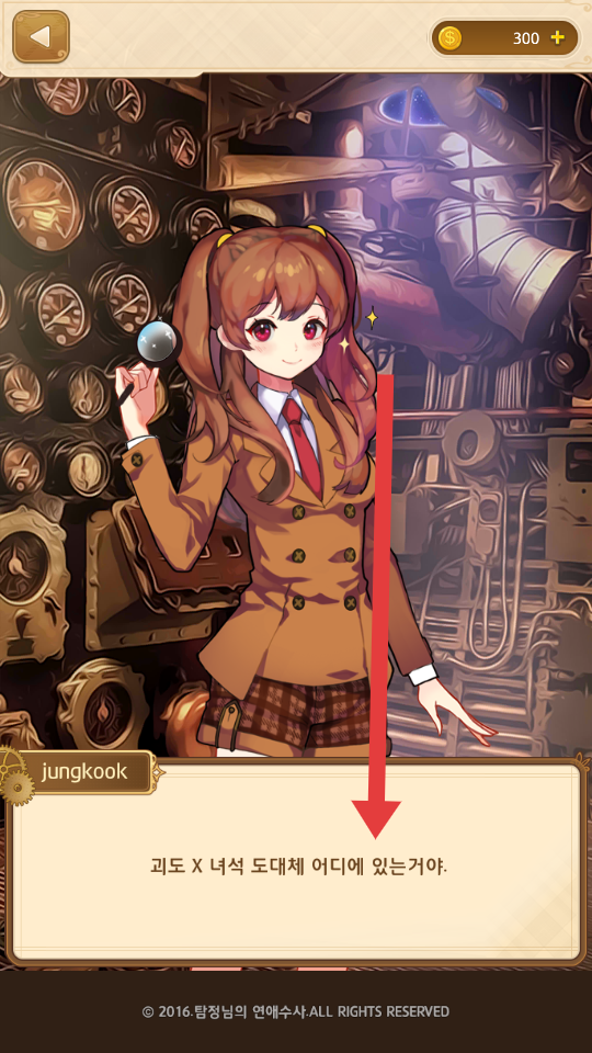 2、遇到雙馬尾的女主的校服的造型,閱讀相關(guān)的對話,了解劇情的推進(jìn),繼續(xù)開始解謎的流程。