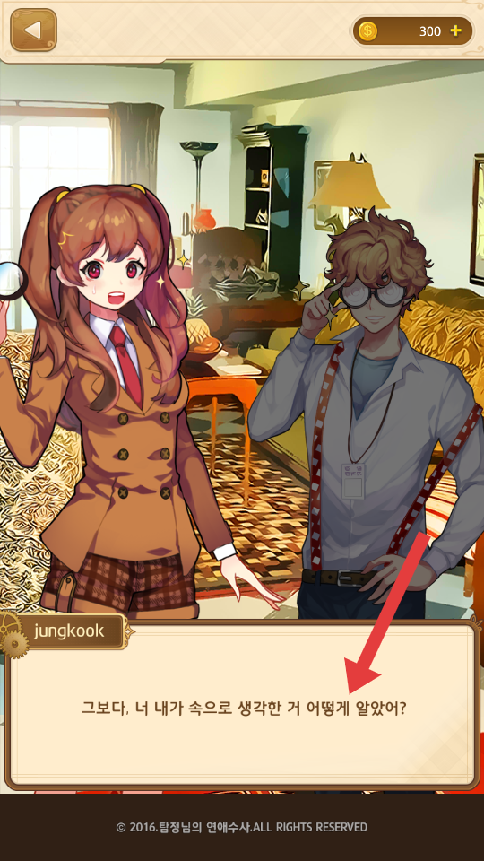 3、角色與戴眼鏡的男主襯衫背帶褲的造型進(jìn)行互動(dòng),回應(yīng)著解鎖情感線,持續(xù)探索接下來的劇情。