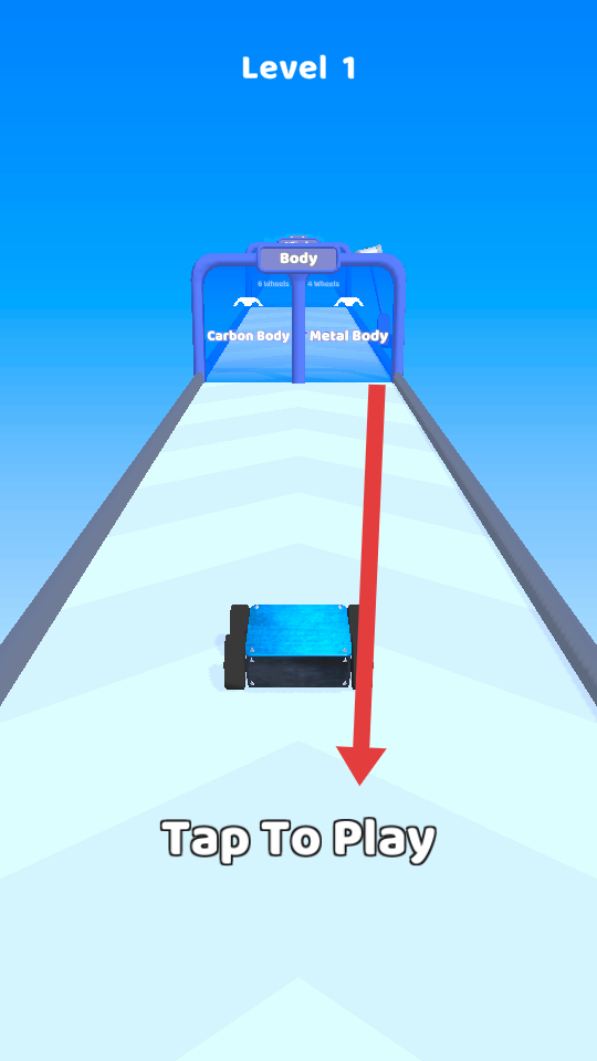 1、點擊Tap To Play開始啟動車輛通行,優(yōu)先沖向body門,選Metal Body強化車身,提升了屬性。