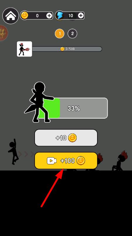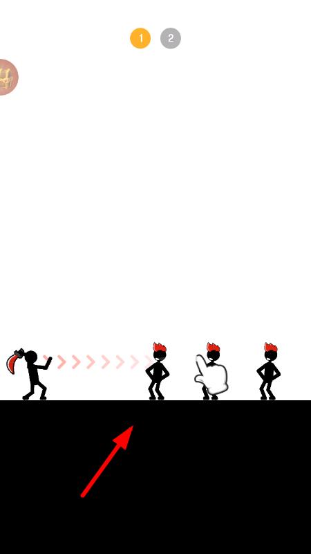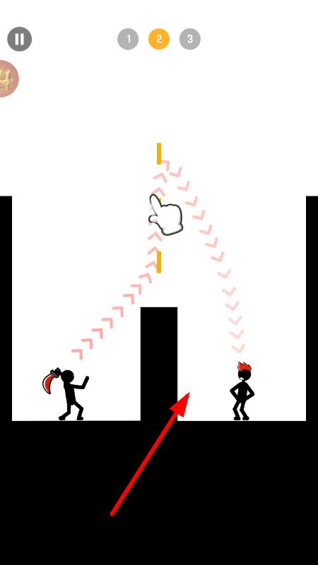 1、進入游戲后,觀察戰(zhàn)場中火柴人與boss的位置,在屏幕上用手指畫出線條,確定武器投擲的路徑與角度,完成首次攻擊嘗試。