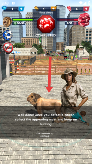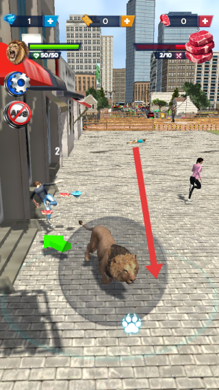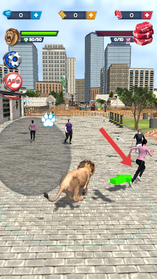 1、操控著獅子的角色沿箭頭找市民,靠近后用技能的爪印來(lái)攻擊,優(yōu)先來(lái)狩獵落單的目標(biāo),避免被圍。