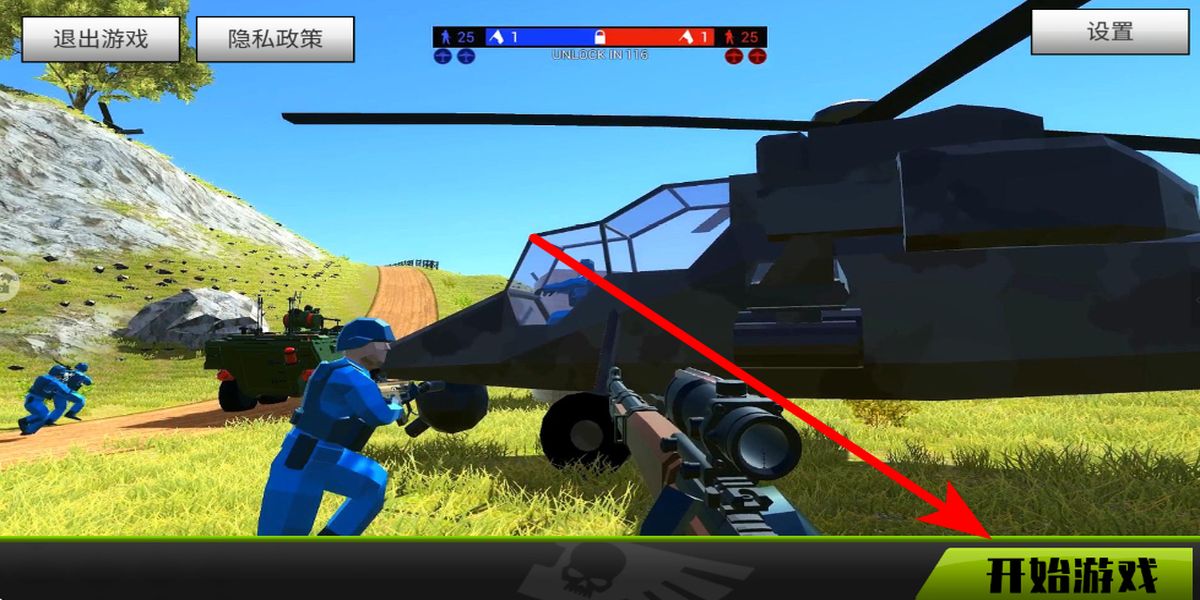 1、進(jìn)入游戲后點擊開始游戲按鈕開啟征程,要留意界面上方雙方人數(shù)和比分,根據(jù)局勢調(diào)整策略,合理利用載具快速轉(zhuǎn)移位置。