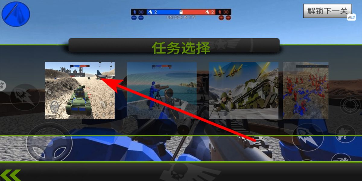 2、任務(wù)選擇界面有多種場景任務(wù),選擇坦克作戰(zhàn)任務(wù)時,駕駛坦克要注意地形,利用山坡等掩體躲避敵方火力,找準(zhǔn)時機(jī)開炮攻擊。