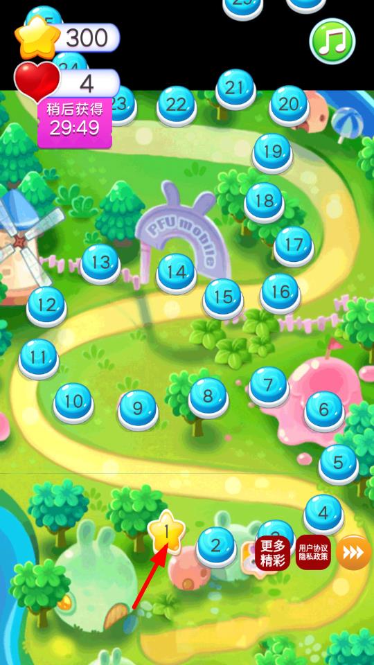 1、進(jìn)入游戲后,選擇想要挑戰(zhàn)的初始關(guān)卡,觀察布滿草莓、香蕉等各色水果方塊的棋盤,滑動(dòng)屏幕調(diào)換相鄰水果位置,形成三個(gè)及以上相連的同種類水果即可消除。