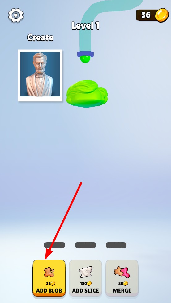 2、消耗金幣點(diǎn)擊ADD BLOB添加泥塊擴(kuò)大體積,ADD SLICE切割塑造輪廓,MERGE合并泥塊,加速形態(tài)成長。