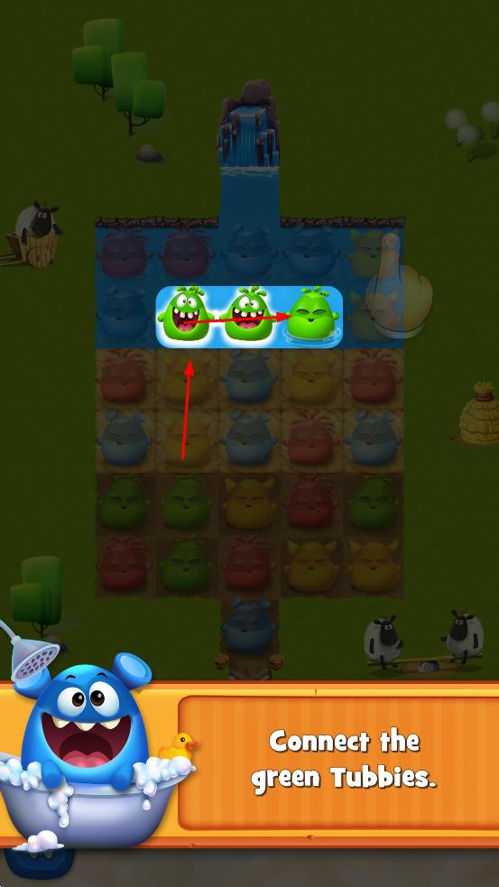 1、點(diǎn)擊連接同色Tubbies,觸發(fā)消除,開(kāi)啟關(guān)卡挑戰(zhàn)。
