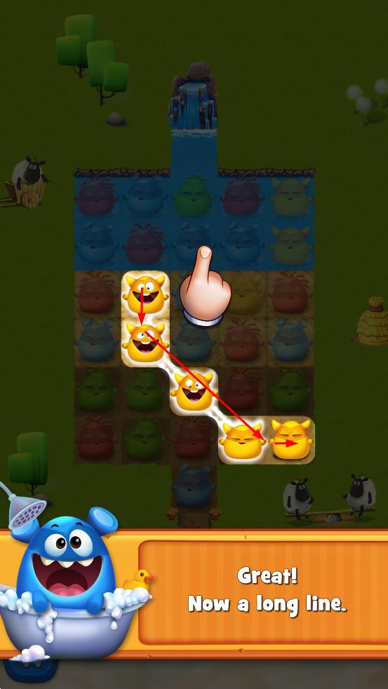 2、規(guī)劃路徑連接長(zhǎng)串同色Tubbies,形成長(zhǎng)線消除,提升得分。