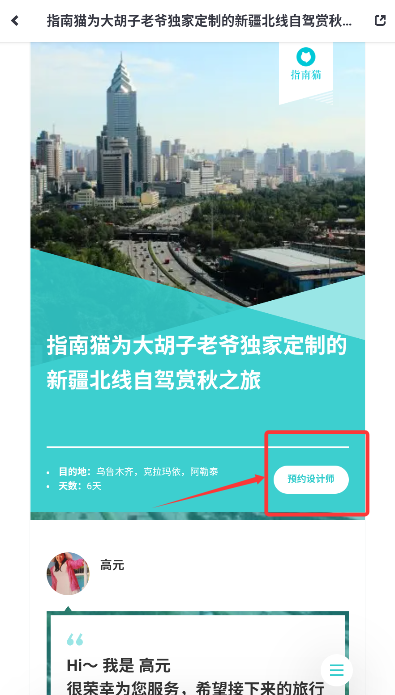 3、頁面底部點擊定制服務(wù),即可跳轉(zhuǎn)至專業(yè)旅行顧問預(yù)約界面。