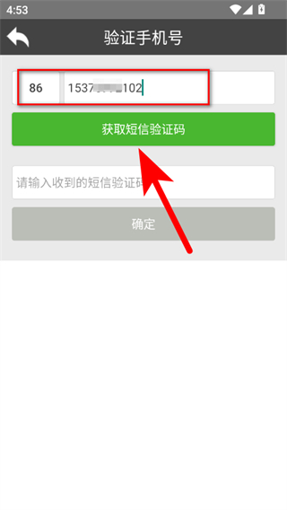 2、在驗證手機號頁面輸入手機號,點擊獲取短信驗證碼。