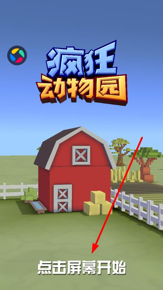 1、進(jìn)入瘋狂動物園游戲初始界面,點(diǎn)擊屏幕下方點(diǎn)擊屏幕開始文字區(qū)域,正式啟動游戲。
