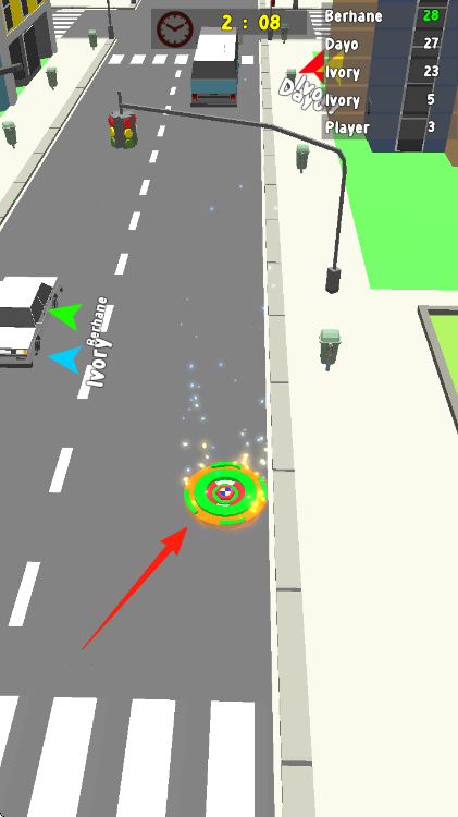 1、操控陀螺在街道移動(dòng)、收集分?jǐn)?shù)道具、注意計(jì)時(shí)器和排名、爭(zhēng)取高分擊敗其他玩家。