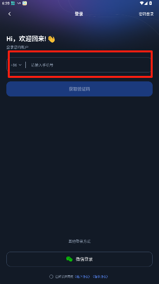 4、輸入手機(jī)號碼和你獲得的驗證碼即可登錄個人賬號。