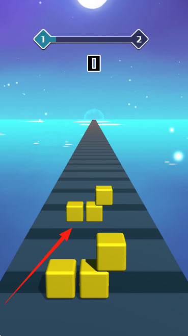 1、游戲開始關(guān)注上方進度條,了解當前關(guān)卡進度,操控方塊按紅箭頭方向在狹長道路上前進。
