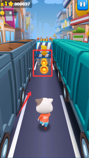 2、路上盡量多吃金幣,攢夠了可以在商店換皮膚或買道具,讓加菲貓跑得更輕松。
