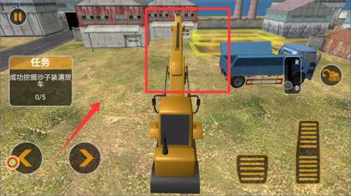 2、進入操作界面后切換到第一視角,這樣看得更清楚,慢慢練習(xí)控制機械臂和鏟斗的精準動作。