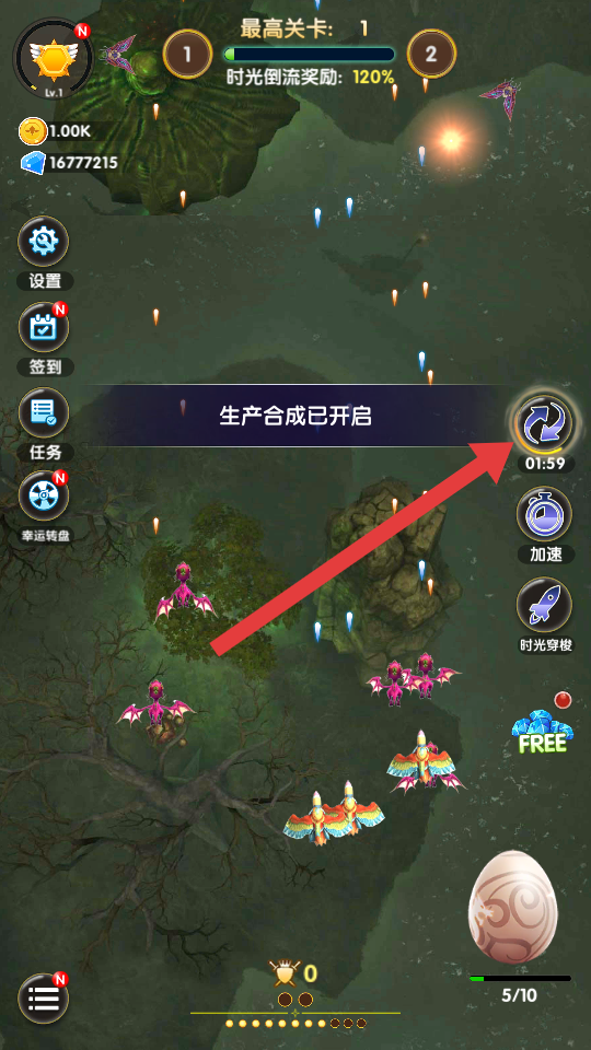 3、利用自動合成來加速功能通過簡化操作,通過簽到或者幸運轉盤領資源,推進最高的關卡。