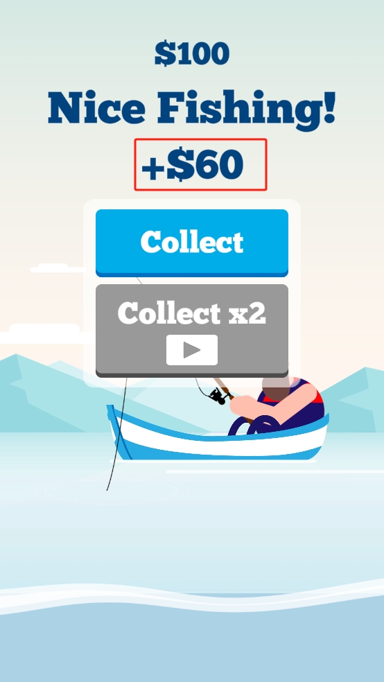 3、釣魚結(jié)束后,界面會顯示收獲金額,點擊藍色的Collect按鈕,即可領取此次釣魚獲得的金錢,用于后續(xù)游戲操作。