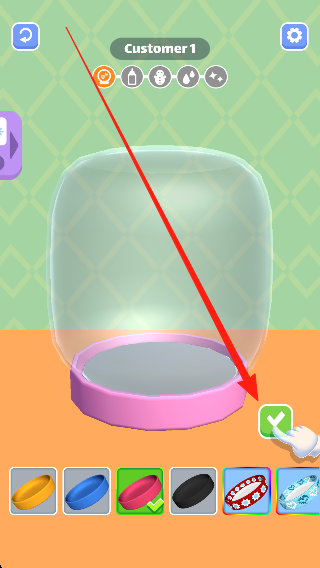 2、有多種不同的瓶蓋,挑選喜歡的瓶蓋顏色,點(diǎn)擊下方打勾確認(rèn),搭建展示容器。