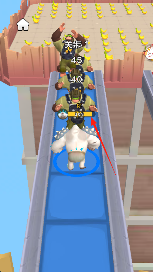 2、收集一定數(shù)量香蕉后,角色會發(fā)生變身如變成白色巨獸,利用變身優(yōu)勢繼續(xù)前進。