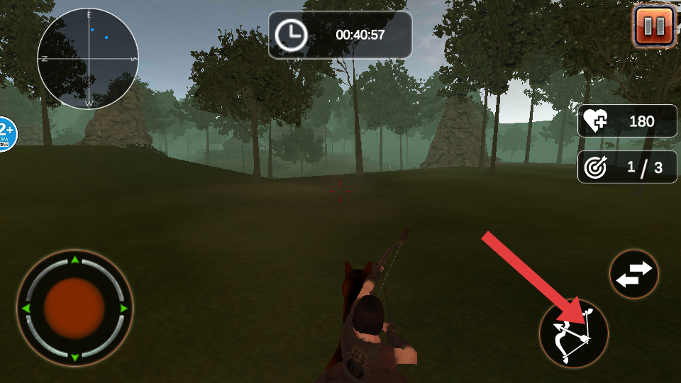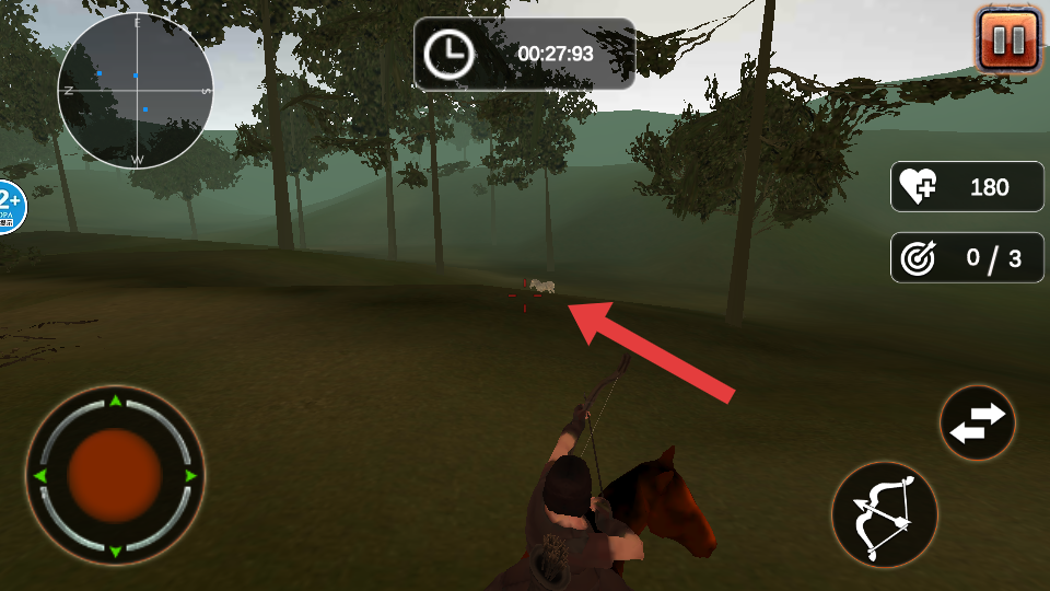 1、騎乘馬匹時,用左側(cè)搖桿速移,鎖定地圖獵物如羊,點擊右側(cè)弓箭按鈕射擊,優(yōu)先完成狩獵目標。