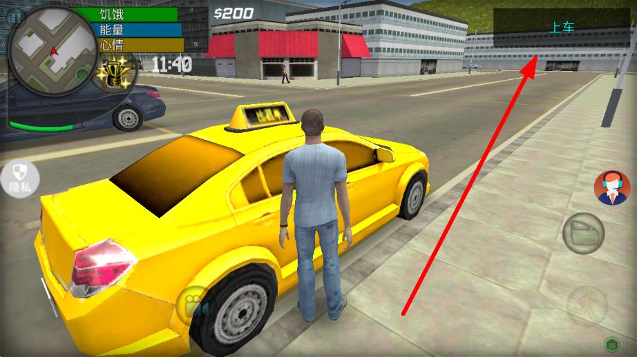 2、在開放世界場景中,找到黃色出租車后,點(diǎn)擊界面提示的上車按鈕,進(jìn)入車輛駕駛環(huán)節(jié),按規(guī)則完成駕照考試相關(guān)操作。