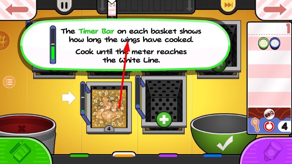 1、進入游戲后,熟悉烤翅店的操作臺與基礎食材,按照顧客訂單要求,選取雞翅進行腌制,放入烤爐設定時間,完成第一份烤翅制作。
