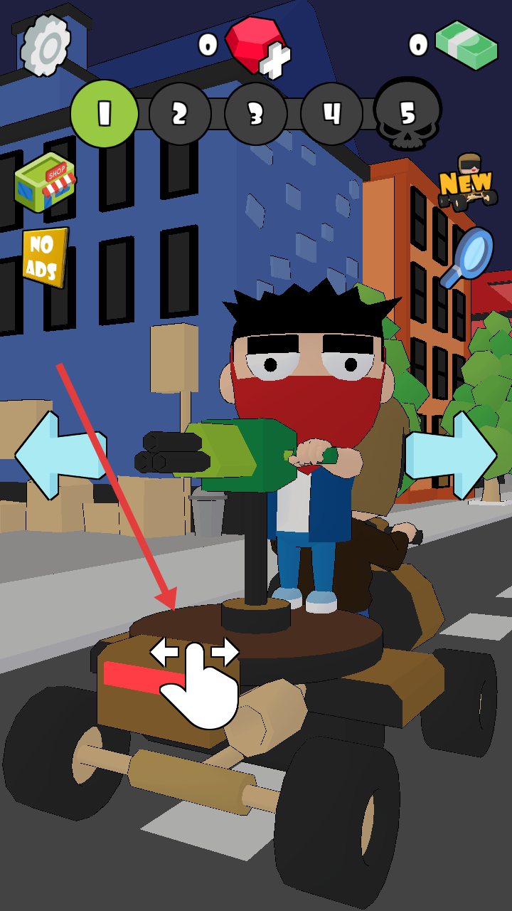 1、點(diǎn)擊車身兩側(cè)箭頭樣式的操作按鈕,精準(zhǔn)操控載具行進(jìn)方向,同時借助車上武器,提前瞄準(zhǔn),為即將遭遇的僵尸圍堵場景做好應(yīng)對準(zhǔn)備。