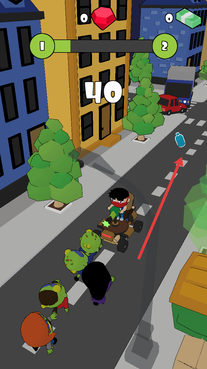 2、載具行駛過程中,緊盯道路狀況,靈活避讓僵尸群體,發(fā)現(xiàn)藍(lán)色道具如水瓶及時拾取,借助道具效果,維持推進(jìn)節(jié)奏,提升生存幾率與得分效率。