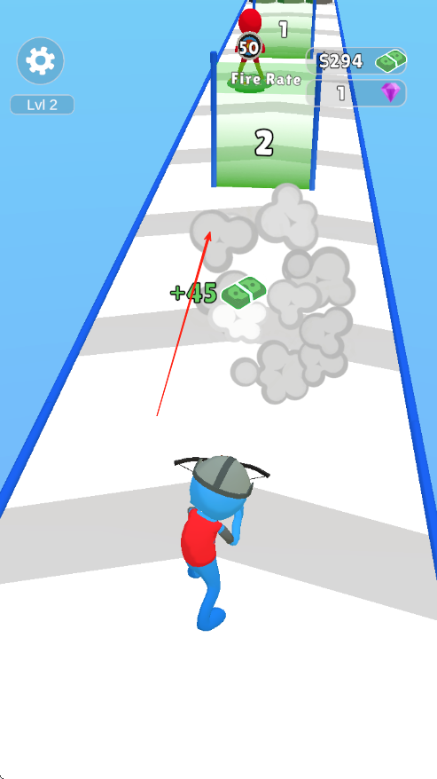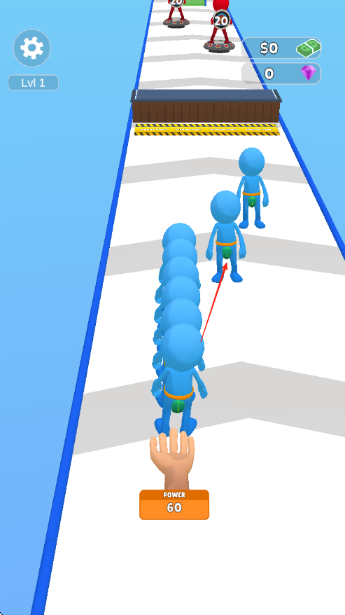 1、游戲初始在【Lvl1】,通過點擊【POWER】按鈕,集結(jié)藍色小人,壯大隊伍規(guī)模。
