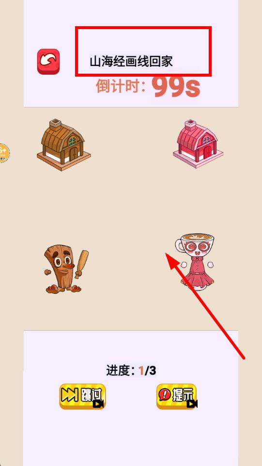 2、進(jìn)入山海經(jīng)畫線回家關(guān)卡后,留意99秒倒計(jì)時(shí),觀察角色與房屋,按指引為角色規(guī)劃路線,讓其回到對(duì)應(yīng)房屋。