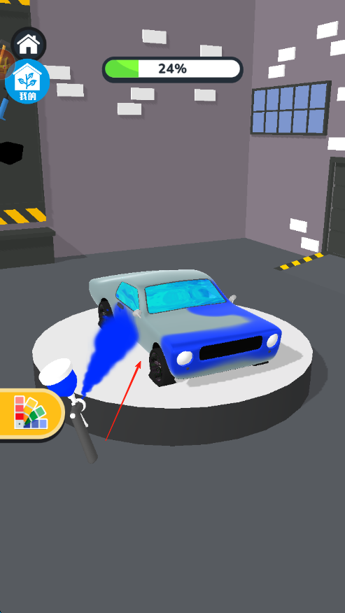 2、點擊并按住噴漆按鈕,對汽車進行噴涂,屏幕上方進度條顯示噴涂完成度,持續(xù)操作直至完成車身涂鴉。