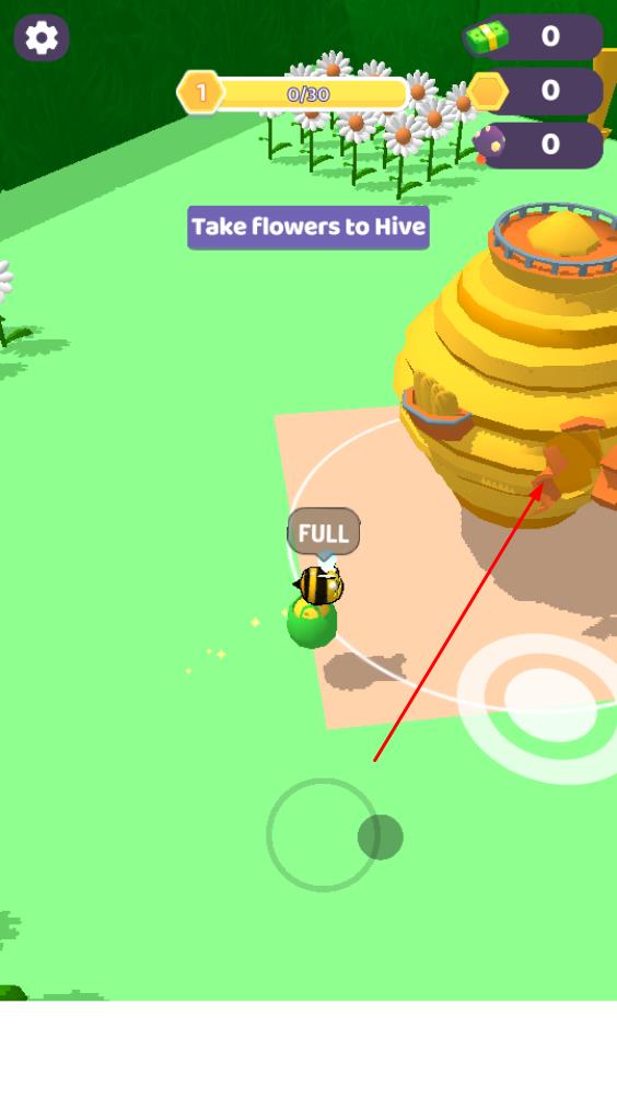 2、采集滿后返回黃色蜂巢,交付花朵,推動關卡進度條增長,達成目標。