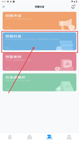 2、切換到預(yù)警科普界面,點(diǎn)擊預(yù)警科普板塊,學(xué)習(xí)地震預(yù)警相關(guān)科學(xué)知識與防范要點(diǎn)。