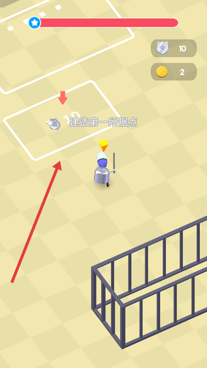 2、獲取足夠盾牌后,前往白色框定區(qū)域,建造第一所據(jù)點(diǎn),點(diǎn)擊對應(yīng)位置完成搭建,強(qiáng)化防御。