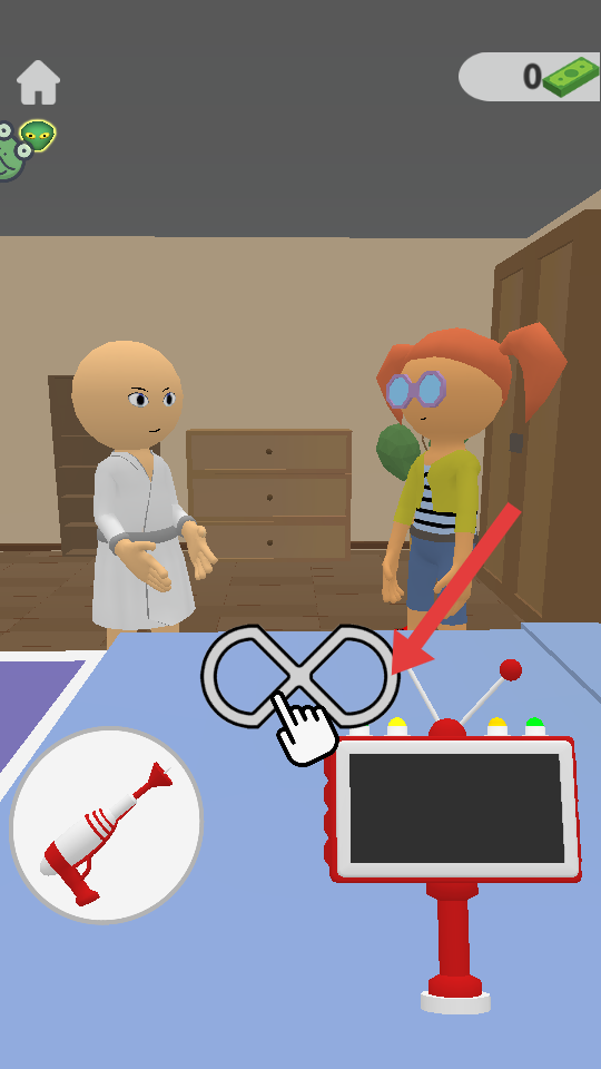 1、進入游戲后按屏幕指引點擊場景中的∞形道具,安裝到外星人電視裝置上,觸發(fā)外星人投影顯影。