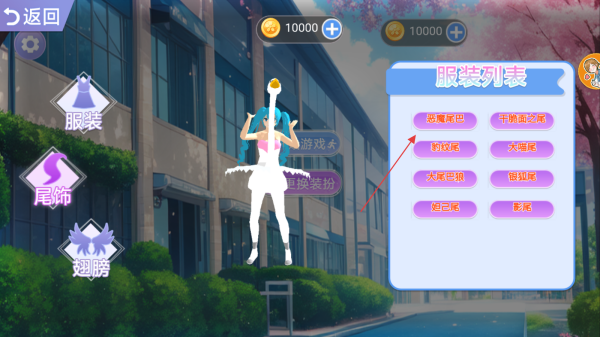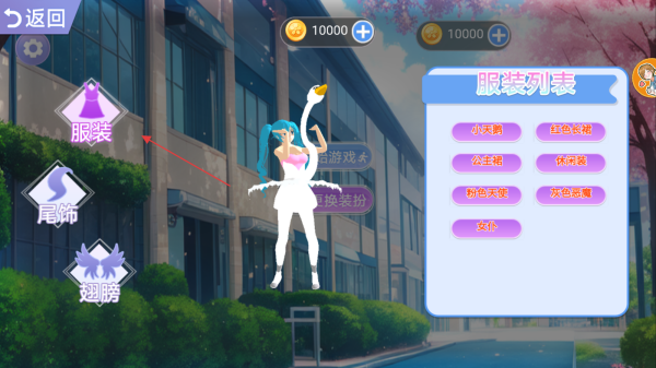 2、進入裝扮界面后,點擊左側的服裝選項,右側會顯示服裝列表。