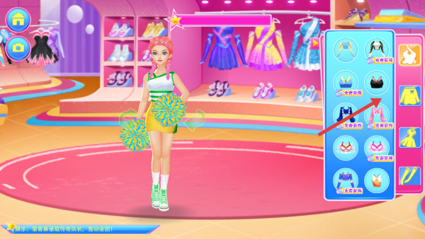 1、開啟游戲之旅,率先踏入美妝沙龍場景,為啦啦隊(duì)少女挑選合適的水療護(hù)理項(xiàng)目,放松身心,精心設(shè)計(jì)個(gè)性發(fā)型,從俏皮馬尾到優(yōu)雅盤發(fā)任你選擇。