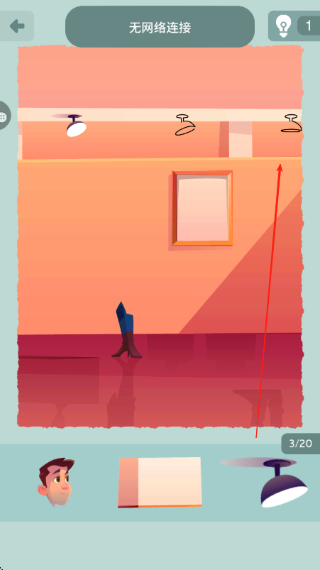 2、遇難用右上角燈泡提示,優(yōu)先填特征明顯圖形,依據(jù)場景邏輯擺素材推進(jìn)進(jìn)度。