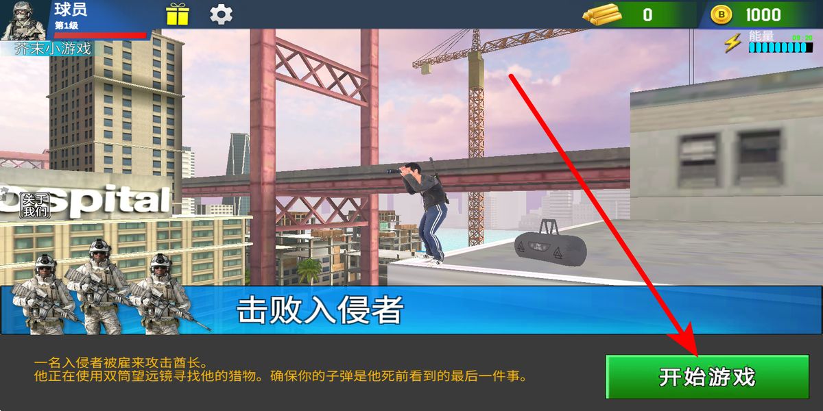 1、點(diǎn)擊開始游戲承接任務(wù),先研讀場(chǎng)景描述,明確目標(biāo)行動(dòng)軌跡,借助高樓、工地等地形特征,預(yù)判敵人藏身位置,規(guī)劃狙擊路線。