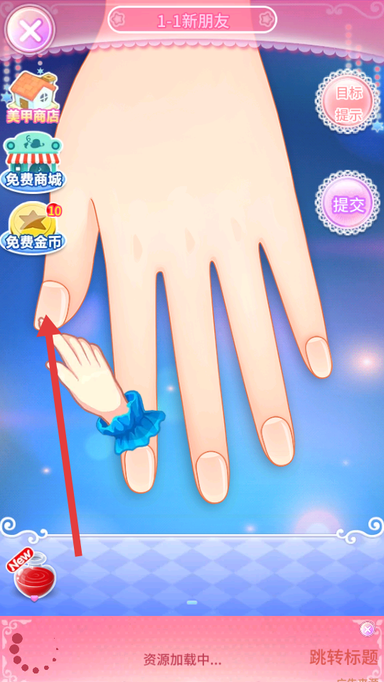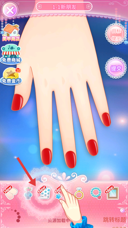 2、在裝飾界面挑選甲油顏色、圖案貼紙和魔法飾品,通過點(diǎn)擊、拖拽操作將部件應(yīng)用到指甲上,調(diào)整位置與大小。